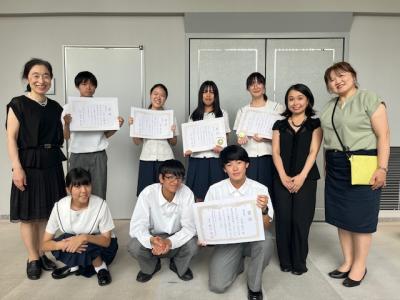 また石川県高等学校声楽コンクールでは、第3位に2年 米谷美紘さん、第4位に2年 安田陽依さん、優秀賞に1年 足達天志さん、坂下純樹さん、優良賞に2年 砺波清夏さんが受賞されました。