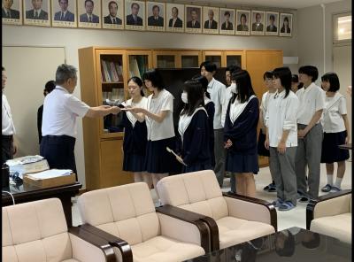2025年9月20日 19時28分 [金沢辰巳丘20]今週末の「第78回中部合唱コンクール」に合唱部が、また10月18日からの「第79回瀧廉太郎記念全日本高等学校声楽コンクール」に合唱部3年の安田陽依さんが出場するにあたり、校長先生から激励費をいただきました。