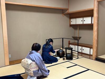 その中の和室で、茶道部で活動されたおふたりの卒業生をお招きして、卒業を祝う茶会を開きました。