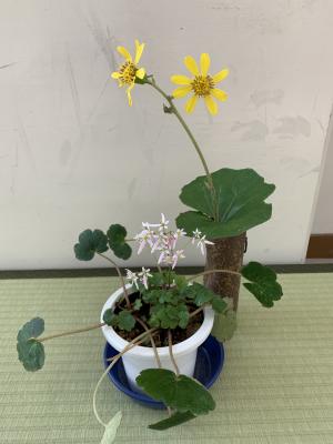 石蕗(ツワブキ)と桃色大文字草