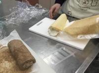 【家庭部】ロールケーキ 2025年1月17日 13時40分 今回はロールケーキ作りに挑戦しました。これまでで、一番難易度が高いレシピでしたが、卵白の泡立てが上手くいったのか、キメが細かい生地に焼き上がりました。生クリームとチョコレートクリームの2種類の味を楽しむことができました。