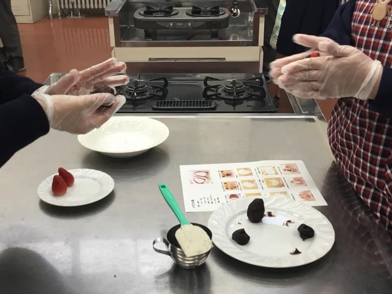 もうすぐバレンタインということで、今回の活動では「生チョコタルト」を作りました。