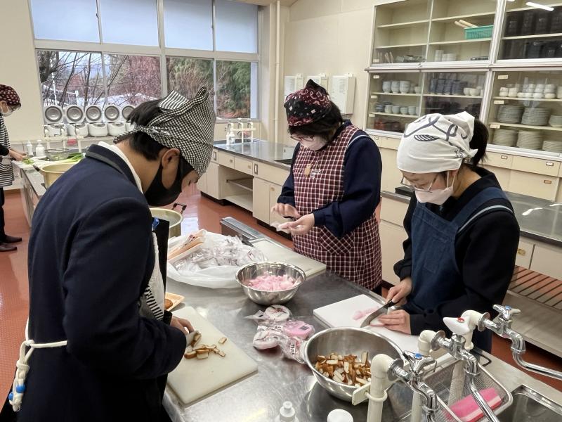 今回のお手伝いは、石川県の冬の定番・具だくさんの「めった汁」作りです!部員たちは「みんなに喜んでもらいたい」という一心で、終始楽しく、和気あいあいと活動することができました。