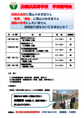 令和7年度の学校説明会(7月,8月開催)の募集を開始しました.。