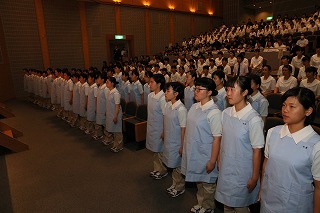 7月12日(金)にサンビーム日和ケ丘で健康福祉科2年生の『第25回福志式』が挙行されました。当日は多くの保護者の皆様にご参列いただき、ありがとうございました。福志式に向けて準備をしていく中で、多くの方々に支えられていることや応援されていることを強く感じ、その感謝の気持ちを胸に、クラス全員が心を一つにして「誓いの言葉」を述べることができました。生徒たちは福志式後の7月29日から、本格的な介護実習に臨んでいます。