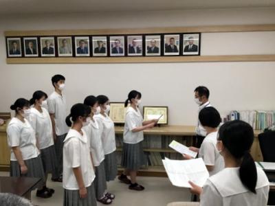 9月5日(月)には認証式を行い、これからの生徒会執行部としての活動に意欲を燃やしていました。10月から後期生徒会の本格的な活動開始となります。8人の活躍を期待したいと思います。