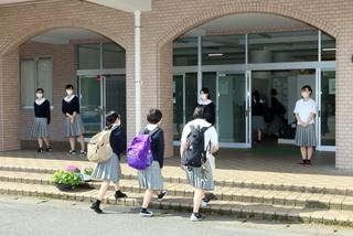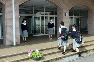 『挨拶運動』が、学校再開第1週目に昨年度後期生徒会執行部によって、感染予防に留意しつつ、朝の生徒玄関前で行われました。いよいよ再開した学校を元気よくスタートしたいという思いで、登校してくる皆に大きな声で挨拶をしました。新入生も含めて、生徒全員が大きな声で挨拶を返してくれました。今年度は異例のスタートとなりましたが、この元気のよさと明るさで、乗り越えていってくれるものと確信させてくれました。