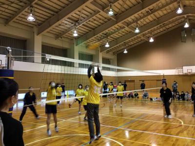 12月17日(金)球技大会を行いました。競技はバスケットボール、バレーボール、バドミントン、卓球、ドッヂボールの5種目でした。雪の心配があるとても寒い日でしたが、体育館は熱気に包まれて、熱い戦いが行われました。感染予防のため、競技中や開会式、表彰式などは、教室や体育館に分散して生徒は活動しました。また教室には中継をつなぎました。自分の競技が終わった生徒は教室からクラスメイトの応援をしていました。また生徒たちだけではなく午後からは、バレーボールに教員チームも参戦し、とても賑やかで楽しい行事になりました。