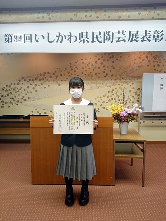 1月15日(土)から始まった『いしかわ県民陶芸展』において、1年生の佐渡 蓮さんが「石川県教育委員会賞」を、同じく1年生の新美 眞大くんが「奨励賞」を受賞しました。