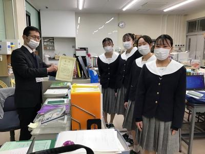 学校に帰り、長田校長先生に報告しました。ともに取り組んできた3年生は、看護臨地実習中だったので、今後は、学内でもう一度プレゼンテーションを予定しています。