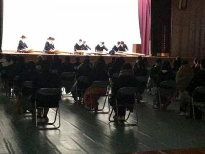 2月4日(金)に予餞会を行いました。感染予防のため3年生と下級生は別々の場所で参加しました。生徒会を中心に、各クラスや筝曲部、軽音楽部、男子生徒の有志たちなどのさまざまな出し物がありました。各クラスの動画や軽音楽部のリモート中継、筝曲部は生演奏を行い、感染予防と行事の実施のハイブリッドな開催ができました。3年生はとても喜んでいました。1・2年生も楽しむことのできた予餞会でした。
