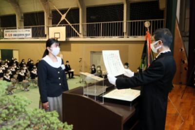 3月3日(木)、衛生看護科40名、健康福祉科26名が高校を卒業、衛生看護科専攻科37名が専攻科課程を修了しました。感染状況を考慮し式典は縮小、在校生は教室でZoomにて参加しました。箏曲部の演奏で入場し、証書を授与した後の校長先生の心のこもった式辞、在校生の送辞や卒業生・修了生の答辞は3年間、5年間の想い出が蘇るとても温かいものでした。最後に感謝の思いを保護者に伝え、とてもよい式だったと思います。卒業生・修了生の今後の活躍を職員一同心から祈っています。