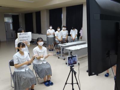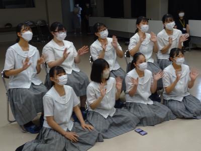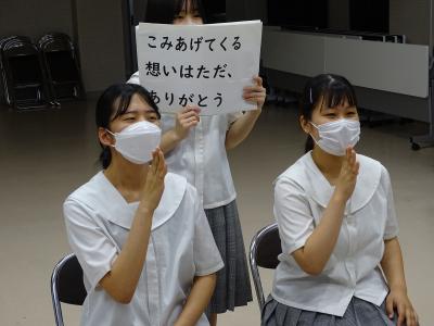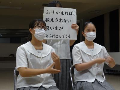 その学習会の中で、本校生徒が手話歌を披露するとともに、学習会に参加した小学生に手話歌を覚えてもらい、一緒に歌い楽しい時間を過ごしました。
