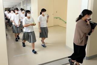 第1回定期考査3日目の終了後に、地震発生後に火災が起きたという想定で『防災避難訓練』を行いました。まず、地震発生後には、机の下などの安全な場所に身を隠しました。揺れが治まって、火災が発生した連絡の後に、体育館へ避難をしました。避難行動や人員確認は速やかに整然と行われました。コロナ感染症対策ということで、全校一斉に体育館に集合することがないような対応が取られました。教室に戻った後に、校長先生からの講評が放送で行われました。今は、生徒として避難誘導される側ですが、将来は、看護師・介護福祉士として、患者様・利用者様の避難を誘導する立場になります。そのことを意識した、しっかりとした訓練になりました。