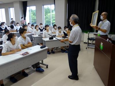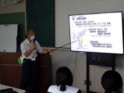 9月8日に「専門高校等における産学連携人材育成事業」の取り組みとして、今回は「ふるさと教育~田鶴浜の歴史・魅力~」と題して、講師として田鶴浜地方史の会会長観田健治様、長田次夫様をお招きし、田鶴浜町の歴史や魅力等について講話を拝聴しました。