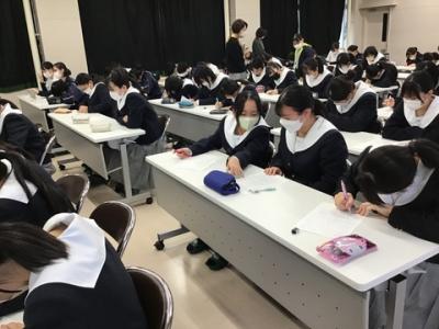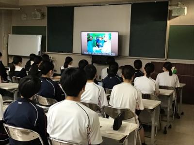 衛生看護科・健康福祉科1年生が全員で、いしかわのプロフェッショナルお二人のインタビューDVDを視聴しました。初めは菫仙会 恵寿総合病院 理事長の神野正博さん、『終わらない革新』というテーマで、「求められる医療とは何か」と考え、いくつもの新たな改革をされてきたお話に生徒達は食い入るように視線を向けていました。