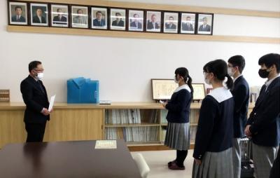 本校美術部と写真部の生徒が陶芸を教わっている田鶴浜在住の日展会友の陶芸家・小谷内和央先生より作品を寄贈していただきました。
