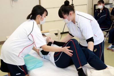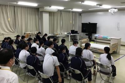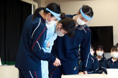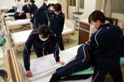 また、コンテスト終了後には担当教員からのデモンストレーションが行われました。それを見た生徒たちは試験後にも関わらず、すぐに技術習得のために練習を始めるなど、学習に大変意欲的に取り組む姿勢が見られました。立派な介護従事者になれるよう、これからも生徒を育てていきます。
