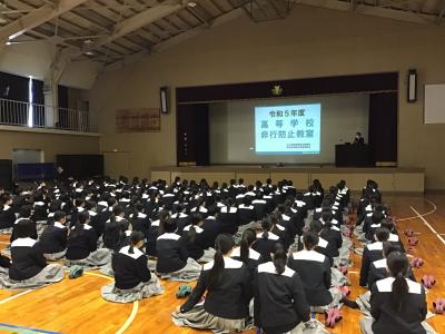 5月11日(木)、石川県教育委員会より山下 陽介氏、石川県警察本部より肥田 望氏を講師としてお招きし、全校生徒を対象に非行防止教室を開催しました。