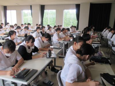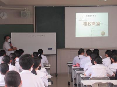 7月11日(火)の4限目、1年生全員を対象に西浦雅人税理士をお呼びして、租税教室を行いました。税についての堅い話ばかりではなく、自分の歩んでこられた道についての話や、教育に使われる税金など身近な物事の話、「○○に税はかかるか?」などのクイズもあって、生徒も興味を持って聞き入っていました。