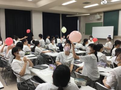 体験学習では、「感覚情報を予測に利用する」を風船を使って行いました。生徒は、感覚情報の処理が低下したらどんな反応になるのかを考えながら体験学習を行いました。