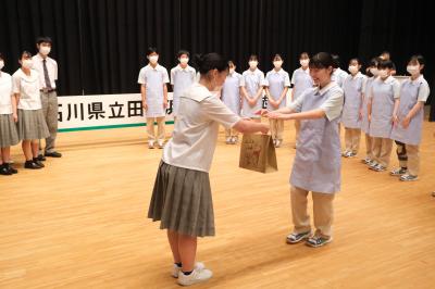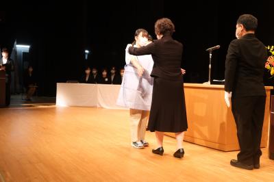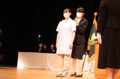式典前には同級生の衛生看護科2年生から応援メッセージを、式典後には健康福祉科3年生から激励のプレゼントが送られました。