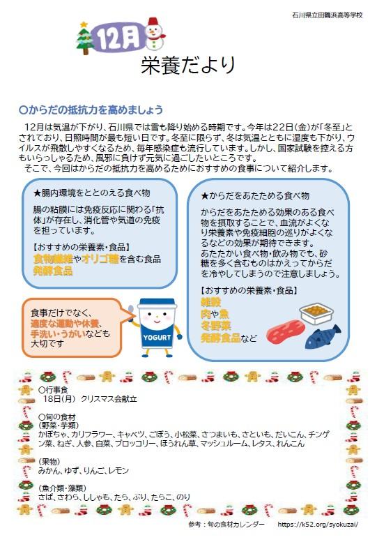 12月寮献立表・栄養だより 2023年11月28日 09時33分 [taturh] 12月の献立表と栄養だよりです。ご覧ください。R05_12月献立表.pdfR05_12月栄養だより.pdf(下記のものと同様です)