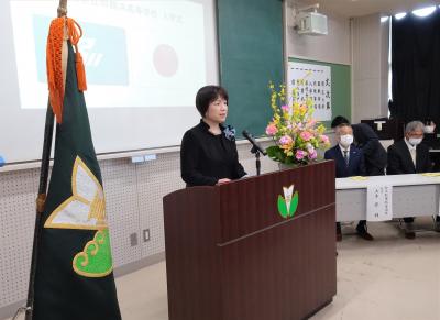 能登半島地震で校舎も甚大な被害を受け、視聴覚室で挙行しましたが、本校で新入生を迎えられたことをとても嬉しく思っています。職員、在校生一同全力で応援していきます。