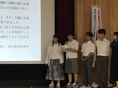 健康福祉科3年生4名が「近畿・北陸地域ASPnet校(ユネスコスクール)学びあい交流会」に参加しました。このプロジェクトは、近畿地域のユネスコスクールの児童生徒・大学生と北陸地域の小中高校生・大学生が、ともに若者として連帯して震災に向き合える学びを共有することを意図した交流会です。本校生徒は震災を経験した当事者として参加しました。約70名の近畿地区の小中高生とワークショップを通して交流しながら、「若者」の立場で持続可能な社会の実現にむけて、防災、復興などについて学びを深めました。