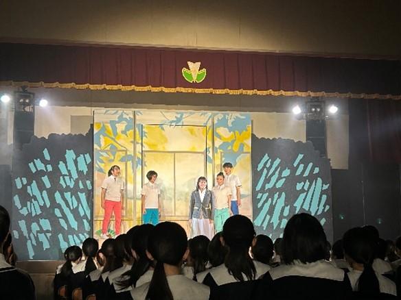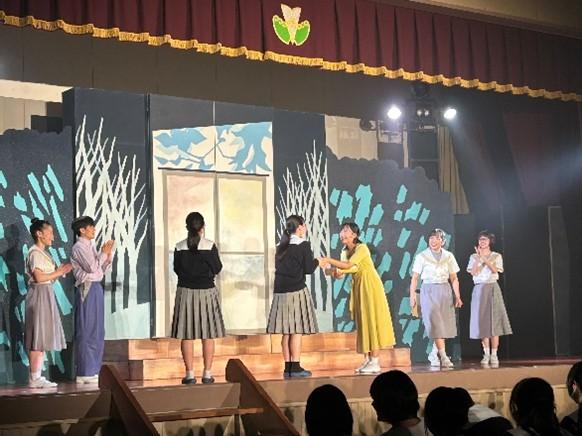 2024年11月2日 11時10分 [taturh]10月28日(月)に劇団わらび座さんを本校にお招きし、ミュージカル「青春(アオハル)するべ!」を観劇しました。生徒が毎年様々な文化に触れる機会となっている文化教室ですが、元日の能登半島地震の影響から、今年度は例年と異なり本校の体育館が舞台となりました。普段の体育館が本格的な舞台のセットに変化している様子に生徒からは驚きの声が聞こえてきました。自分たちが学校生活を送っている場所で観劇できたことが、生徒にとって特別な思い出の1つになったのではないかと感じます。