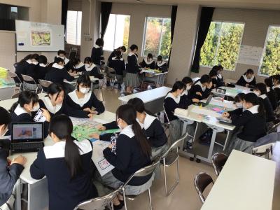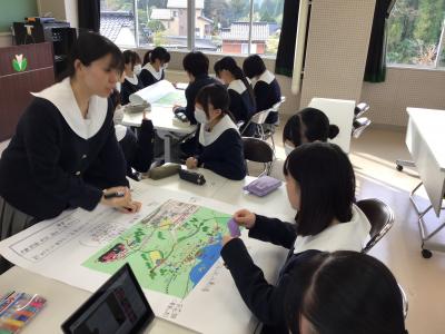 2024年11月28日 10時36分 [taturh]2年生が「ふるさと教育推進事業」の一環として、3回にわたり「理想のまち“たつるはま”」について考えました。8グループに分かれ、大切な町がこれから先も発展し続けていくために必要なことを考えました。多くの家屋が震災で傷つきました。そして、次々に解体されて更地になっていく風景を目の当たりにして考えたこと、今だからこそ考えられたこと「理想のまち」を模造紙にまとめていきました。