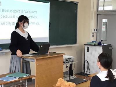2025年3月6日 08時31分 [taturh]健康福祉科1年生が、英語の時間にパフォーマンステストを行いました。今回のテーマは「eーSports」についてです。それぞれが、eーSportsについて「福祉の視点」で考えたことを工夫を凝らして発表しました。今回は、今年最後のパフォーマンステストで、どの生徒もしっかりとクラスメイトを見つめて、流ちょうにスピーチすることができました。また、発表後の意見交換も英語で活発に行いました。発表を見た、福祉科の先生からも「相手に伝わるように英語でプレゼンテーションしている姿や、理解しようと一生懸命にきく姿勢がとても良かった。また、福祉の視点で考えたことを、自分の言葉にするだけではなく、英語にして伝わるように練習している努力が素晴らしい」とコメントしていました。これからも、多様な視点で考えられる『福祉人』を目指して学んでいきます。