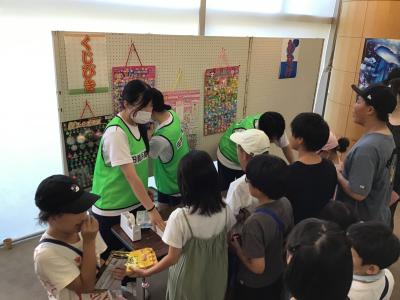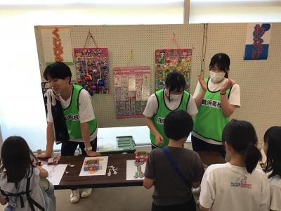 7月31日田鶴浜地区コミュニティセンター「ふらっとカフェ オープニングイベント」に3名の生徒が参加しました。地域の多くの方が集まって話しができる場となり心温まる時間でした。その中で生徒は、縁日の担当をし、幅広い年齢の子どもたちと触れ合い、地域の方々ともお話しをすることができました。