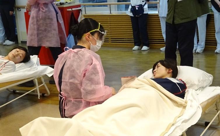 衛生看護科専攻科1年生は、公立能登総合病院で行われた災害対応訓練に模擬患者役として参加しました。