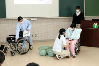 健康福祉科3年生が3年間の学習の総決算として、『介護事例検討会』を行いました。設定された事例に対して、いかに効果的に介護を行うかについて、これまでに学んできた知識や実習での経験を基に、実演などを通して発表を行い、学びの成果を改めて同級生や後輩らと共有しました。司会進行なども生徒が中心になってを行い、感染症対策に十分に配慮しつつ、1・2年生も発表を聞きました。設定された事例に対して、何をどのように考え工夫したのか、その効果をどのように予想しているのかなどについて、しっかりと発表することができました。また、聴いている生徒たちも、真剣にメモを取ったりしていました。発表を参考にして、将来の現場での介護に生かしたり、1・2年生は今後の介護実習に生かしたりすることができます。質疑応答も活発に行われ、意義深い検討会となりました。