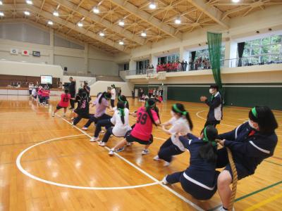 10月31日(金)、田鶴浜体育館にてスポーツフェスが開催されました。 学年やクラスの枠を超え、赤・青・緑・黄の4つの縦割り団に分かれて競い合いました。リレーやバレーボール、大縄跳び、綱引きなど、全員が協力し合う競技では、団結力が試され、学年を超えた交流が深まりました。競技に参加する生徒はもちろん、懸命に応援する生徒たちの元気な姿と笑顔があふれ、活気ある一日となりました。