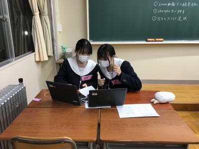 12月19日(金)に本校有志の生徒と立命館守山高等学校の生徒でオンライン交流会を実施しました。12月24日(水)に実際に本校・田鶴浜駅にて行う交流活動に先立ち、「会った時には大親友!」という目標の元、お互いの学校や地域について紹介し合いました。最初は緊張している様子だった生徒達も、会が終わる頃には笑顔でとても楽しそうに交流している様子が印象的でした。