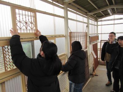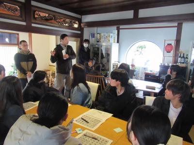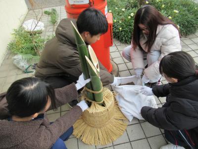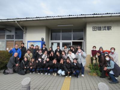 午前中にはタツルエにて立命館大学の山口先生をはじめ、田鶴浜の復興に日々尽力されている方々から、震災当時のお話や復興に向けた取り組みについてお話していただきました。その後、ふるさとの駅を守る会の皆さんのご協力の下、班ごとに組子、門松、凧など駅舎を彩る様々な装飾を作成し、実際に飾りつけをしました。皆で協力し、田鶴浜駅を華やかにすることができました。