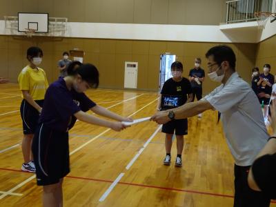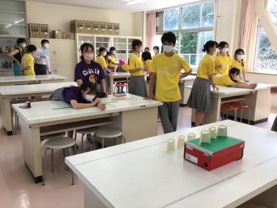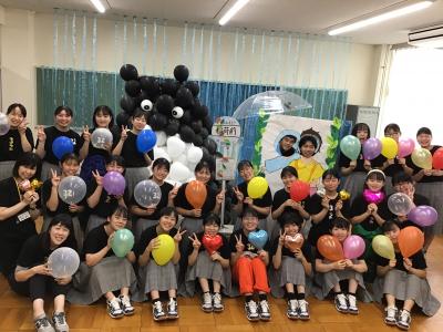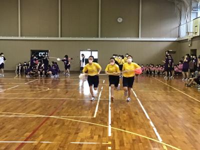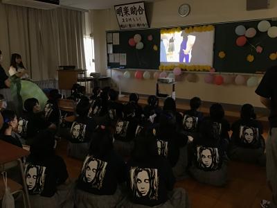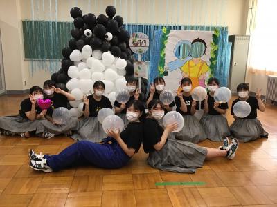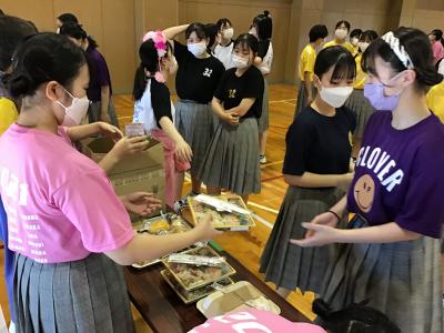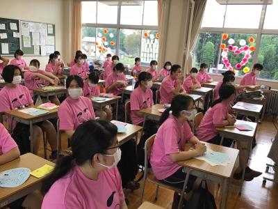 9月22・23日に鶴友祭を行いました。22日は体育祭、23日は文化祭でした。体育祭は雨のため室内で行い、感染予防のため会場を体育館2つに分けて開催しました。GoogleMeetを活用し、出場しない生徒は教室で中継を観ながら応援していました。文化祭では、午前中生徒たちは、テーマパークをイメージしたゲームコーナーを、まわって楽しんでいました。お客さんとお店の番をする役割を自分たちで決めて、運営していました。お昼にはPTA提供のお弁当を食べて、昼からはペーパードレスショーを実施しました。それぞれのクラスの努力の結晶であるドレスはとても素晴らしく、立派なショーになりました。