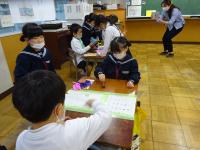 1年生が、秋のものを使ってお店屋さんを開きました。お客さんは、1年生のお友達と級外の先生方です。お客さんに楽しんでもらえるようにと、おもちゃやルール、お店の看板や説明の内容など、試しては直し、1年生なりに試行錯誤を重ねました。当日は、自信を持ってお店屋さんの店員を努めていた子ども達。たくさんのお客さんが来てくれ、楽しんでもらえて子ども達も大満足顔でした。