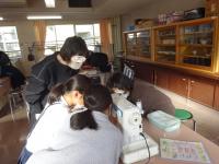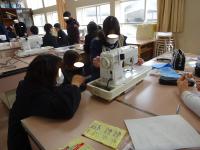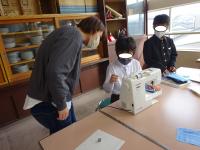 5年生が家庭科でミシンの学習を行いました。学校運営協議会 コミュニティ・スクールディレクターの高田さんにご協力いただき、学習サポータの方を募っていただきました。各クラス2時間の学習に、合わせて10名の方が来てくださいました。