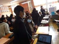 6年生が外国語の学習で、JISTの学生さんと学んできた表現を使って交流しました。タイマーを使って45秒で会話し、席をずれて次の人と会話します。好きな食べ物を聞き取ってビンゴゲームをしながら、みんな必死になりつつ楽しく会話をしていました。昨年度はオンラインでしたが、今年は直接お顔を見て会話することで、テンションも高まるようです。