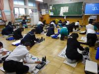 使い方を教わると、さっそくグループの仲間と協力しながら、慎重に、そして真剣に伝統の技に挑戦していました。