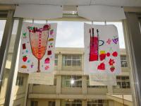 図工の学習で、オリジナルの紙けん玉を作りました。「どうしたらもっと遊びたくなるかな?」「どうしたらもっとおもしろいけん玉になるかな?」とよく考えながら形やデザインを考え、一人ひとりが自分だけの紙けん玉を制作しました。完成後は、友だちと作品を交換し合い、楽しく遊ぶことができました。