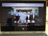 【オンライン始業式で、集中して話を聞く子ども達】