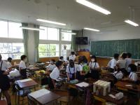 始業式の後、各クラスでは、夏休みの作品や研究の紹介、下の教科書の配布などを行いました。