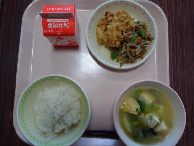 6月4日~10日の「歯と口の健康週間」に合わせ、今日の給食は「かみかみこんだて」で、イカのかきあげ、きんぴらごぼう、あつあげとこまつなのみそしる でした。