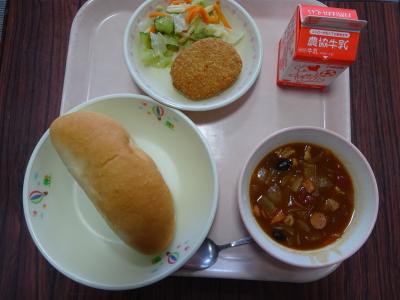 6月3日(金)は、世界遺産 味めぐりこんだてで、コッシーニャふうコロッケ、アーモンドサラダ、フェジョアーダ 米粉パン、牛乳というメニューでした。フェジョアーダに入っていた黒豆は、低学年は苦手のようでしたが、高学年の児童は、完食したクラスが多かったようです。