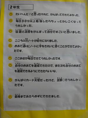 保護者の方から、温かいコメントもたくさんいただき、子ども達のやる気もアップしたようです。今回の取り組みでよかったことを続け、次の頑張り週間につなげていきたいですね。
