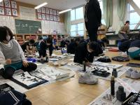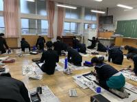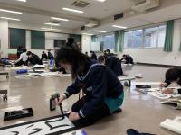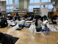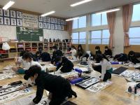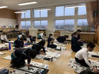 始業式の後に、書き初め大会がありました。冬休みの練習の成果を出そうと、みんな、真剣にとりくんでいました。書き終えた字も、みんな力作ぞろいでした。